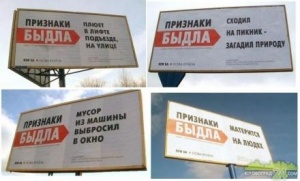 Пока чиновники призывают всех выйти на субботники, на улицах практически всех городов Украины появилась социальная реклама, пропагандирующая чистоту улиц. Фото рекламных бордов, в довольно жесткой форме призывающих не сорить на улице и на природе, не плевать в подъездах и не выражаться, замеченных в Николаеве, выложил на своей странице в социальной сети Facebook пользователь Алекс Воронков.