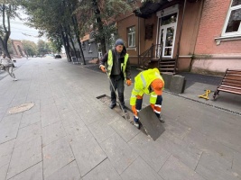 Наразі спеціалісти підрядної організації здійснюють переукладання плитки зі зміщенням.