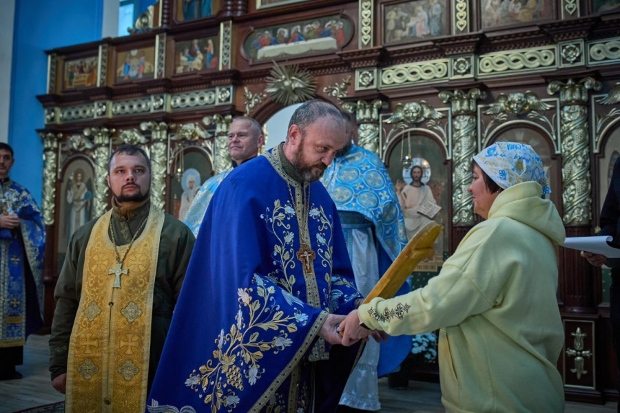Її передали настоятелю храму та військовому капелану отцю Володимиру представники громадської організації «Серця Матерів та Ветеранів Війни Кропивницького».