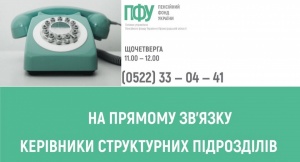 Також у Головному управлінні Пенсійного фонду України в Кіровоградській області щодня діють «гарячі» телефонні лінії. Фахівці управління обслуговування громадян надають оперативні консультації за телефонами: