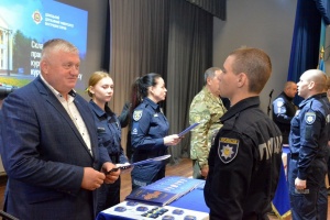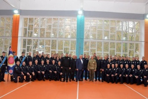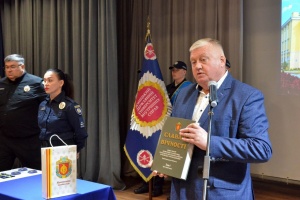 «Сьогодні ми стали свідками важливої події – складання Присяги працівника поліції курсантами першого курсу Донецького державного університету внутрішніх справ. П’ятдесят майбутніх правоохоронців розпочнуть свій шлях до бажаної професії. Ми живемо в часи, коли наша держава бореться за свою свободу. І багато ваших колег, окрім того, що забезпечують безпеку в громадах, стоять на захисті України на найбільш небезпечних ділянках фронту. Вірю, що свою професію ви обрали серцем і розумом! Переконаний, що кожен з вас гідно нестиме високе звання працівника поліції. Бажаю вам витримки, мужності й впевненості у кожному кроці на шляху до професійних вершин!», – звернувся до курсантів Юрій Дрозд.