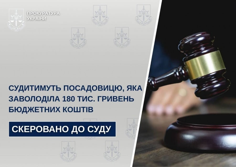 За процесуального керівництва очільника обласної прокуратури скеровано до суду обвинувальний акт стосовно посадовиці за фактом заволодіння бюджетними коштами в умовах воєнного стану (ч. 4 ст. 191 КК України).