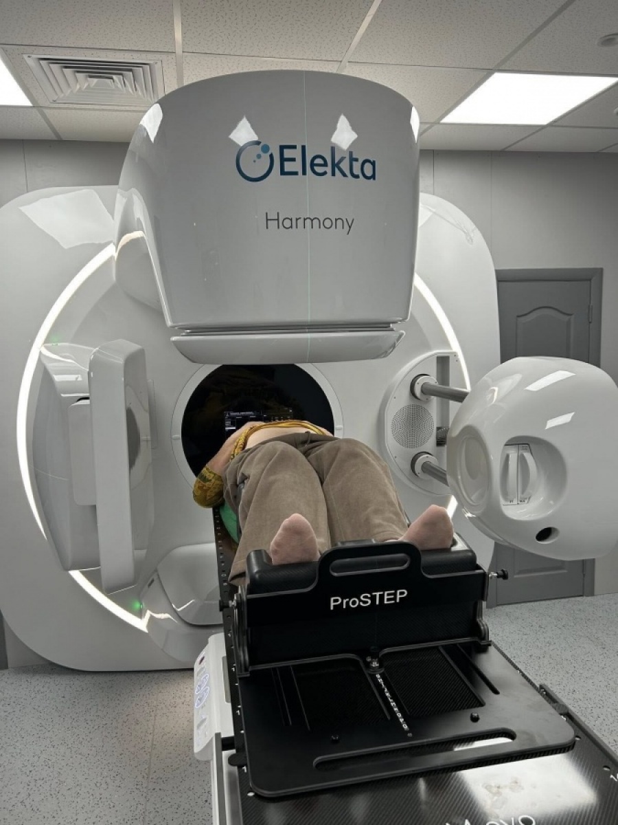 На новому обладнанні пролікували першого пацієнта. Загалом у перший день до терапії було допущено трьох людей із різними онкологічними діагнозами – раком передміхурової залози, шийки матки та метастатичним ураженням хребта.
