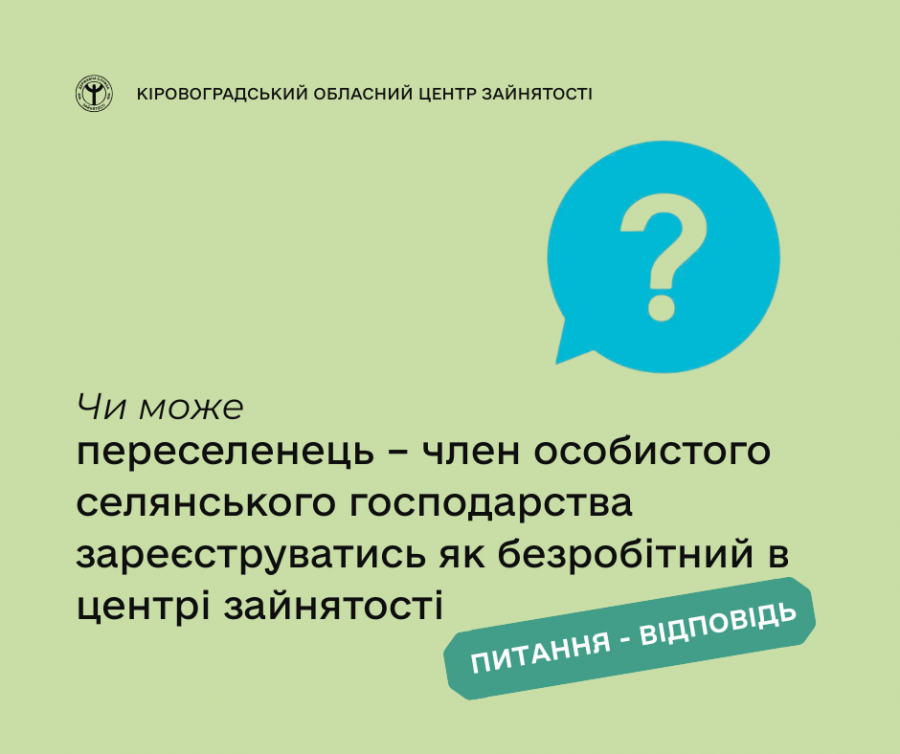 Чи може переселенець – член особистого селянського господарства зареєструватись як безробітний в центрі зайнятості?