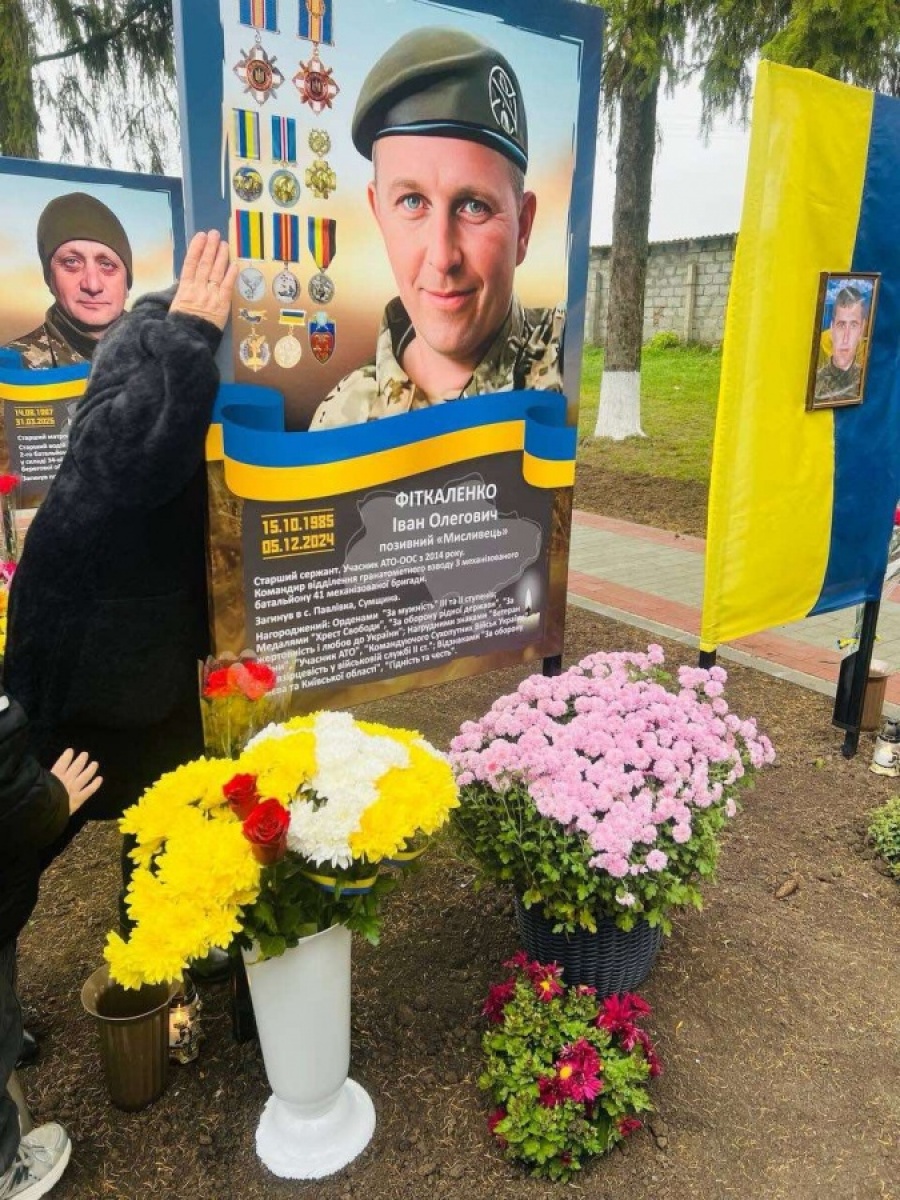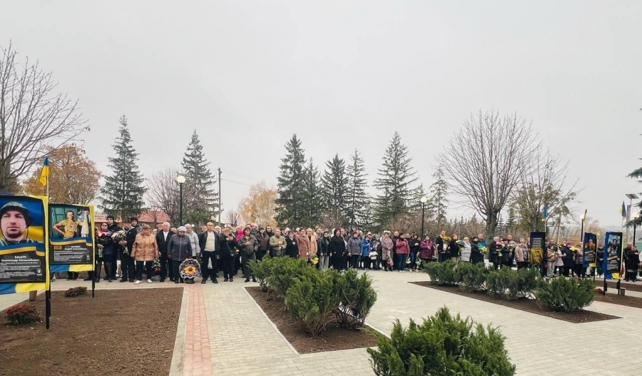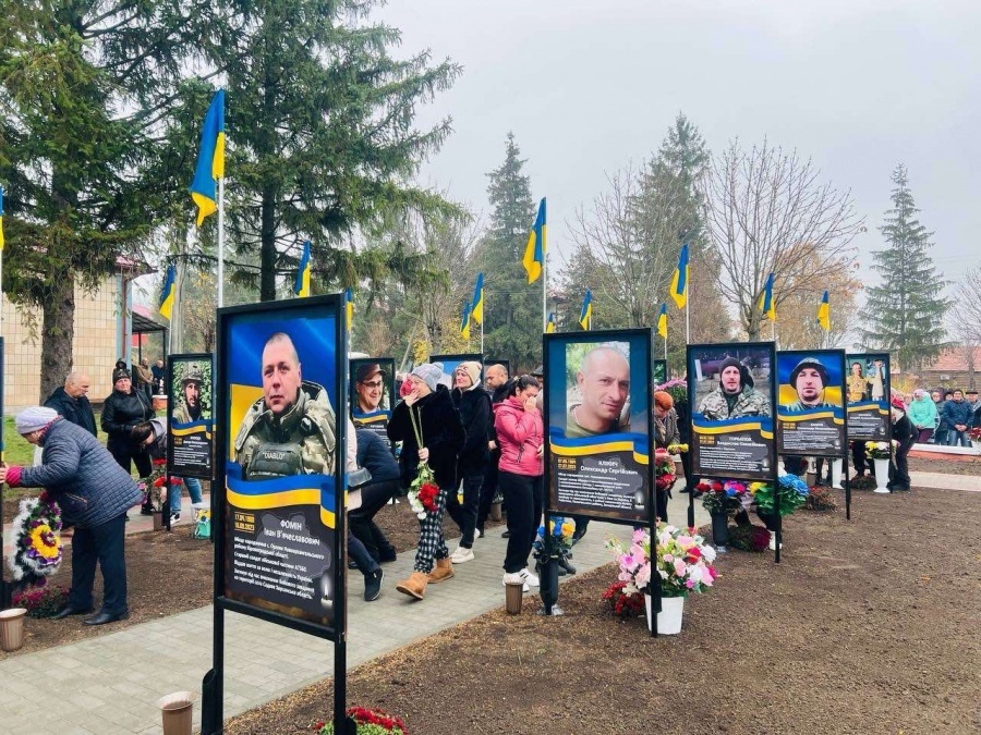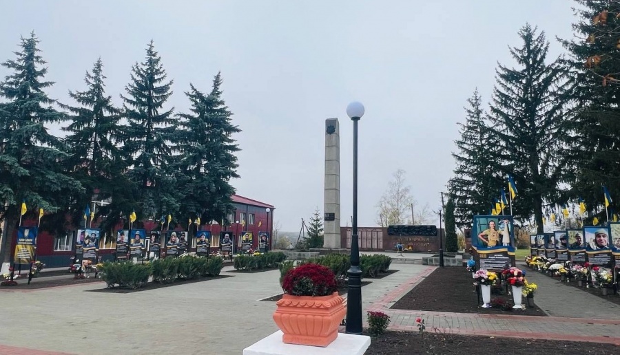 38 портретів захисників розмістили біля меморіалу воїнам-землякам, які загинули у роки Другої світової війни.
