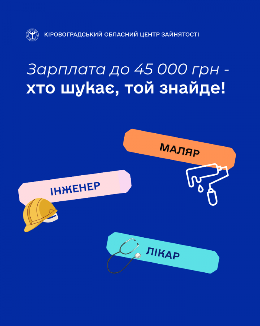 Інші вакансії, актуальні на ринку праці, доступні на вебресурсі Кіровоградського обласного центру зайнятості: https://cutt.ly/qKFhLXK та Єдиному порталі вакансій: https://www.dcz.gov.ua/job .