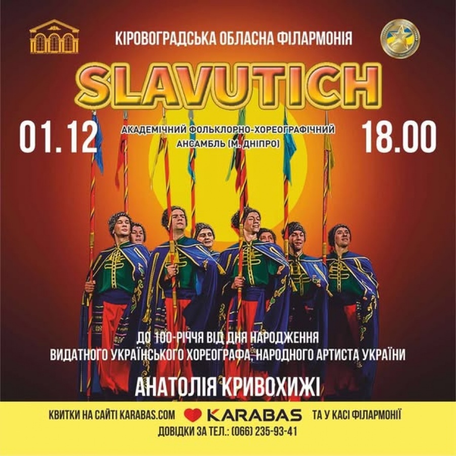 18.00 – святковий концерт академічного фольклорно-хореографічного ансамблю «Славутич» (м. Дніпро).