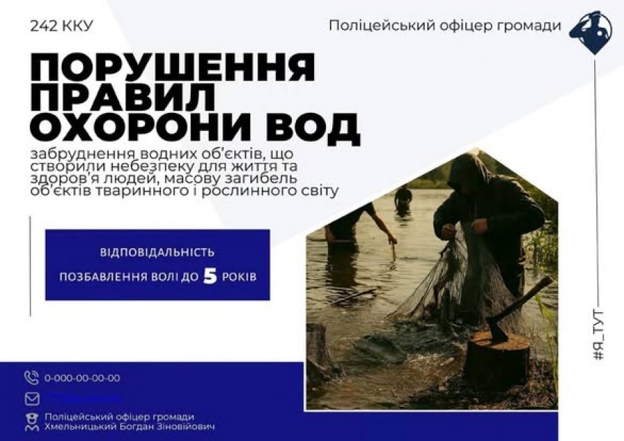 • Порушення правил охорони водних ресурсів, зокрема забруднення водойм та прибережних захисних смуг.