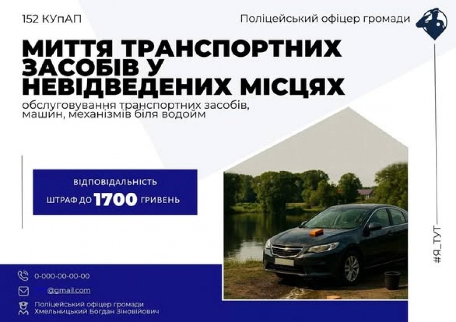 • Миття транспортних засобів на берегах річок, ставків чи інших водних об’єктів, а також на територіях, які не обладнані відповідними постами для мийки.