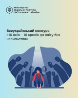 Детальніше дізнатися про конкурс можна на сайті Мінсоцполітики. (https://www.msp.gov.ua/press-center/news/vseukrayinskyy-konkurs-16-dniv-16-krokiv-do-svitu-bez-nasylstva)