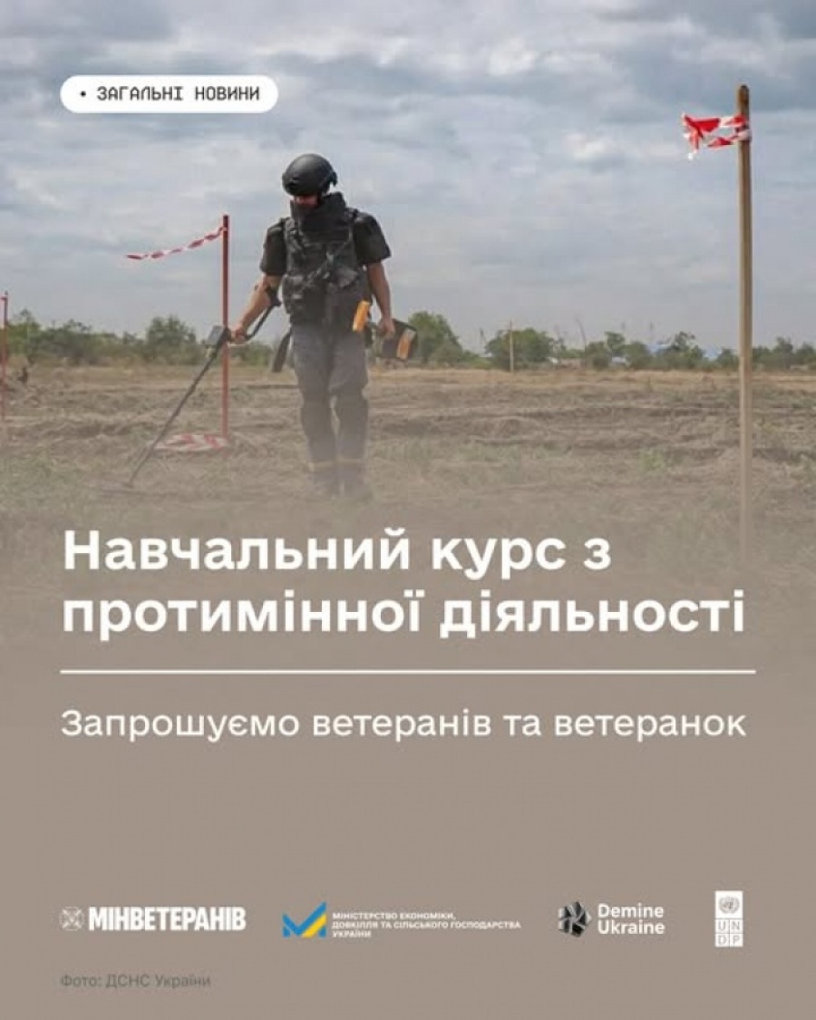 У межах проєкту відбір пройдуть 40 ветеранів та ветеранок, які сформують 10 команд з нетехнічного обстеження та інформування про ризики вибухонебезпечних предметів.