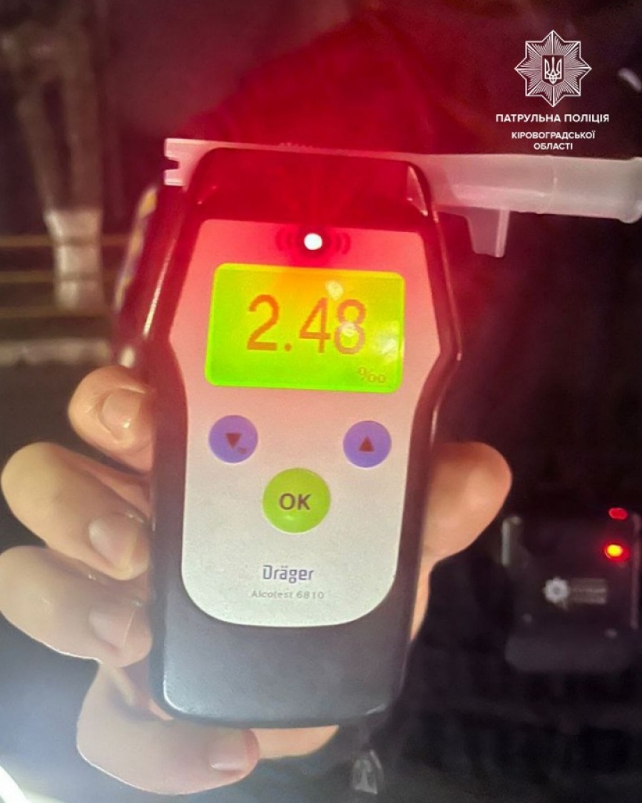 Результат приладу Драгер — 2,48 проміле. Це у понад 12 разів більше допустимої норми.