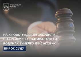 За публічного обвинувачення прокурорів Новомиргородського відділу Новоукраїнської окружної прокуратури до 3 років позбавлення волі засуджено жінку, яка обманом заволоділа грошима людей, що розшукували своїх безвісти зниклих або загиблих родичів-військовослужбовців.