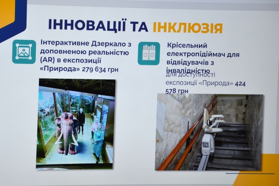 Під час засідання було презентовано результати впровадження грантового проєкту «Музей i громада: простір єднання», в межах якого в ЦОКМ встановили електричний підйомник для відвідувачів з інвалідністю та інтерактивний екран доповненої реальності.