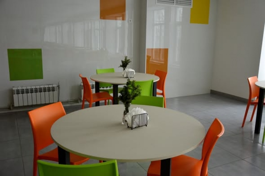 Це повністю модернізований простір для приготування здорової їжі. Новітнє кухонне обладнання значно полегшує роботу кухарів та відповідає необхідним санітарним та технологічним вимогам. Їдальні обладнані системою очистки води, тут дотримано всіх вимог для приготування страв, зберігання продуктів. Крім того, тут розроблено загальне щотижневе меню, яке враховує збалансоване харчування дітей.