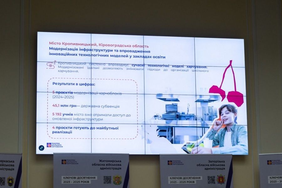 На національній нараді за участі Першої леді Олени Зеленської та Прем’єр-міністерки Юлії Свириденко Кіровоградську область відзначили як одного з лідерів модернізації шкільного харчування.