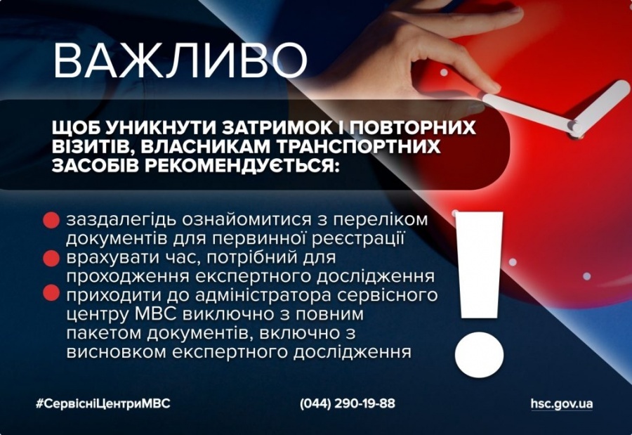 - перед візитом до сервісного центру МВС пройти експертне дослідження;