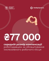 У 2025 році на програму «Компенсація фактичних витрат за облаштування робочих місць» держава виділила 177 мільйонів гривень, а з початку дії програми ця сума сягнула 309 мільйонів. Вже 3,7 тисячі роботодавців скористалися можливістю отримати компенсацію за облаштування робочих місць для людей з інвалідністю.Середній розмір такої компенсації становить 77 тисяч гривень.