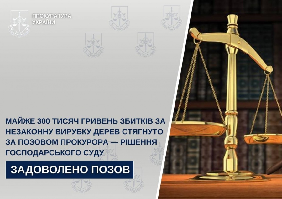 Господарський суд Кіровоградської області задовольнив позов Кропивницької окружної прокуратури та постановив стягнути майже 300 тис грн шкоди, завданої незаконною вирубкою лісових насаджень на території Кропивницького району, до бюджету.