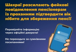 Шахраї розсилають у месенджери фейкові повідомлення пенсіонерам з проханням підтвердити вік, нібито для збереження пенсії. Для цього просять перейти за посиланням та подати анкету.
