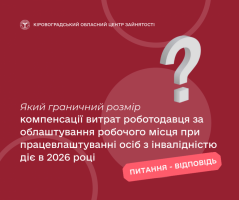 Який граничний розмір компенсації витрат роботодавця за облаштування робочого місця при працевлаштуванні осіб з інвалідністю діє в 2026 році?