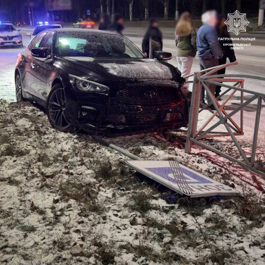 Водій, керуючи автомобілем Infiniti Q50, не був уважний, не врахував дорожньої обстановки, не дотримався безпечної швидкості руху, виїхав за межі проїзної частини та скоїв наїзд на дорожній знак та паркан.