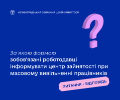 Відповідно до статті 50 Закону України “Про зайнятість населення” роботодавці зобов’язані своєчасно та в повному обсязі подавати центрам зайнятості інформацію про заплановане масове вивільнення працівників у зв’язку із змінами в організації виробництва і праці, у тому числі ліквідацією, реорганізацією або перепрофілюванням підприємств, установ, організацій, скороченням чисельності або штату працівників підприємства, установи, організації незалежно від форми власності, виду діяльності та господарювання.