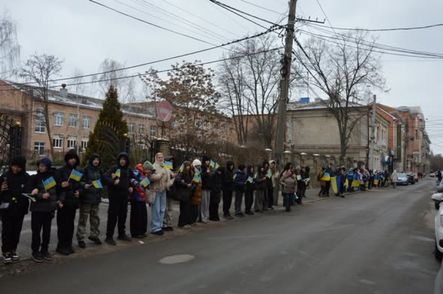 Шістсот учнів навчального закладу, від наймолодших до старшокласників, об’єдналися, щоб продемонструвати єдність, патріотизм і віру в спільне майбутнє нашої держави. Взявшись за руки, діти розтяглися довгою шеренгою вздовж кварталу біля свого ліцею – вулицями Тараса Карпи, Пашутінською, Віктора Чміленка і Великою Перспективною. Найактивніші члени учнівського парламенту ліцею пронесли великий прапор України голосно скандуючи: Україна єдина, соборна, неподільна! Слава Україні! Героям слава!