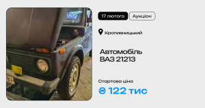 17 лютого Фонд держмайна запрошує взяти участь у приватизаційному аукціоні. Автомобіль ВАЗ 21213, рік випуску 2000, ВА 6578 ВІ.