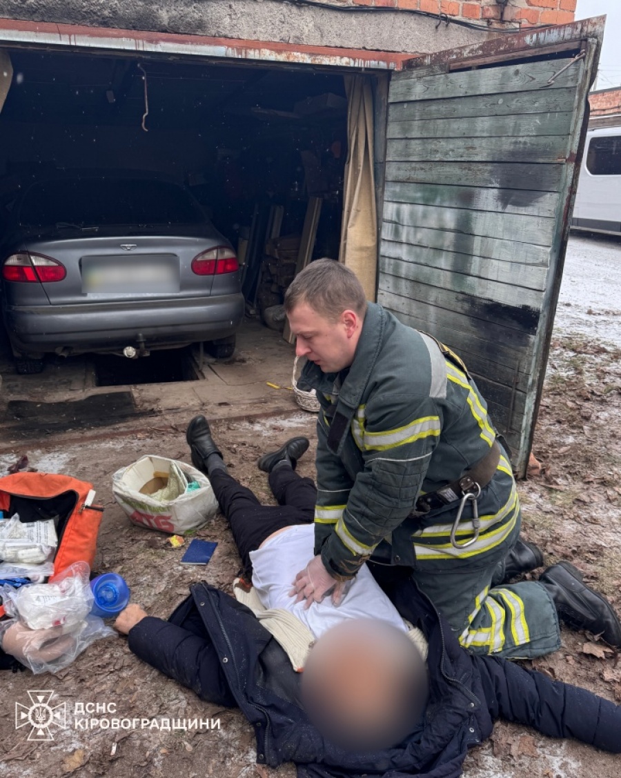 Прибувши за вказаною адресою, бійці олександрійського підрозділу ДСНС відчинили ворота гаража, де виявили непритомного чоловіка в салоні заведеного автомобіля. Рятувальники винесли постраждалогона свіже повітря та проводили комплекс заходів невідкладної допомоги до прибуття працівників екстреної медичної допомоги. На жаль, під час проведення реанімаційних заходів медики констатували смерть чоловіка.