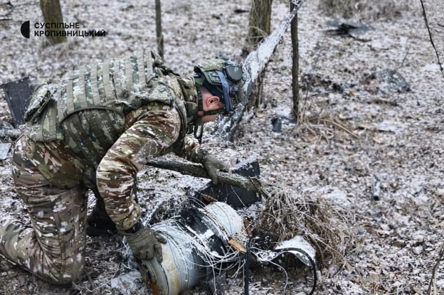 У Кіровоградській області поліцейські вибухотехніки знищили бойову частину російського дрона, яка не здетонувала. Боєприпас знайшли після повітряної тривоги.
