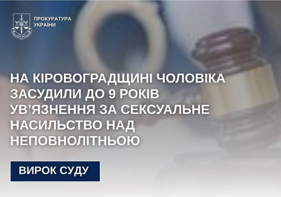 За публічного обвинувачення прокурорів Кіровоградської обласної прокуратури Знам’янський міськрайонний суд ухвалив обвинувальний вирок 29 річному чоловіку, який вчинив сексуальне насильство щодо неповнолітньої.