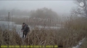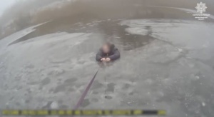 Патрульні Сергій Бак та Лілія Андурова прибули на місце й виявили у водоймі жінку, яка провалилася під кригу та трималася за повідець свого собаки. Сергій Бак, дотримуючись правил безпеки, витягнув її з крижаної води.