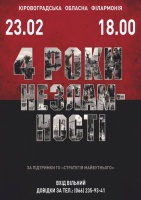 23 лютого о 18:00 год. у Кіровоградській обласній філармонії розпочнеться вечір пам’яті «4 роки незламності», присвячений четвертій річниці повномасштабного вторгнення росії в Україну.