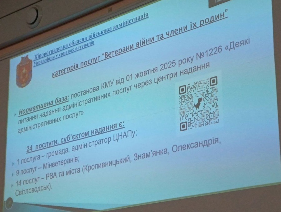 Окрему увагу під час наради зосередили на забезпеченні ветеранів та членів їх родин повним комплексом адміністративних послуг. Дана допомога реалізовуватиметься через «Адмінсервіс Ветеран», в межах якого ЦНАпи реалізовуватимуть механізм «Єдиного вікна».