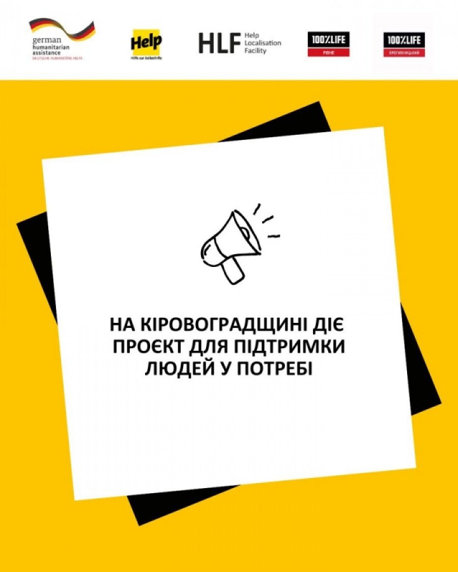 Проєкт «Безпека, підтримка та захист людей у потребі» реалізується БО «Мережа 100 відсотків життя Рівне» та БО «100 відсотків життя. Кропивницький» за фінансової підтримки Федерального міністерства закордонних справ Німеччини та за координації Help – Hilfe zur Selbsthilfe і Програми локалізації Help.