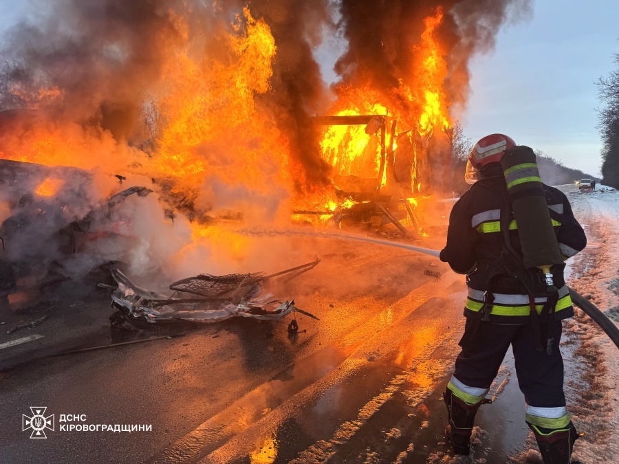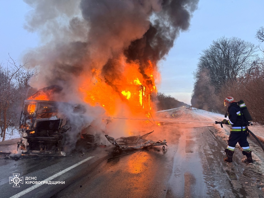 21 лютого о 06:19 до Служби порятунку надійшло повідомлення про пожежу вантажного автомобіля, що виникла внаслідок дорожньо-транспортної пригоди на автодорозі Н-14 «Олександрівка – Кропивницький – Миколаїв» у межах Великосеверинівської громади Кропивницького району.