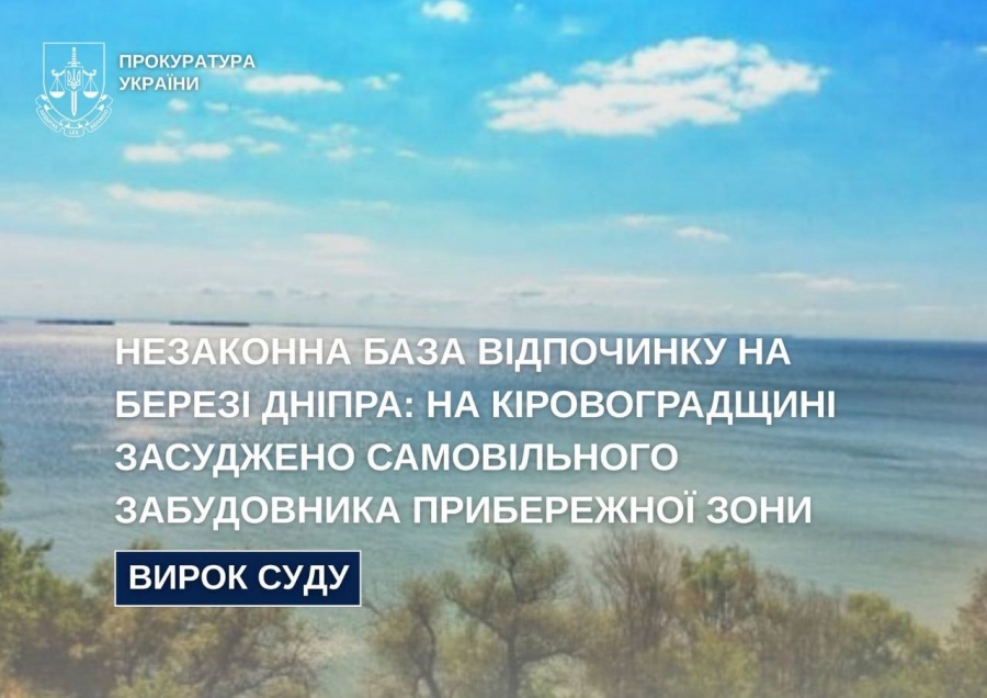 За публічного обвинувачення прокурорів Світловодського відділу Олександрійської окружної прокуратури суд визнав жителя області винним у самовільному зайнятті земель водного фонду та незаконному будівництві в прибережній захисній смузі Кременчуцького водосховища (ч. 2, 4 ст. 197-1 КК України).