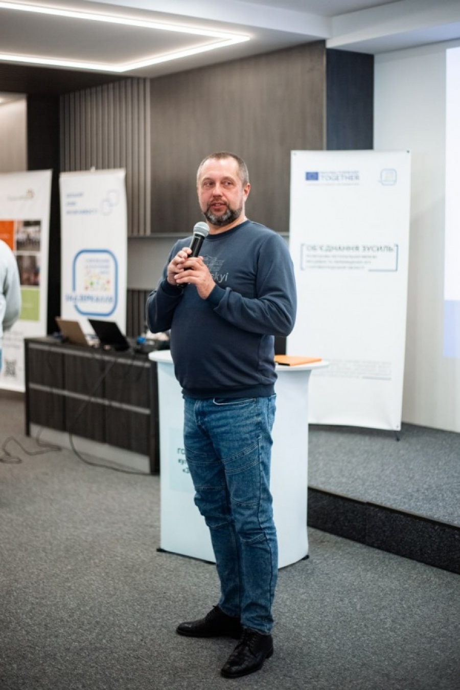 З вітальним словом до учасників звернувся начальник управління стратегічних комунікацій Кіровоградської ОВА Віталій Останній, який наголосив на важливій ролі громадського сектору в умовах війни та відновлення громад.