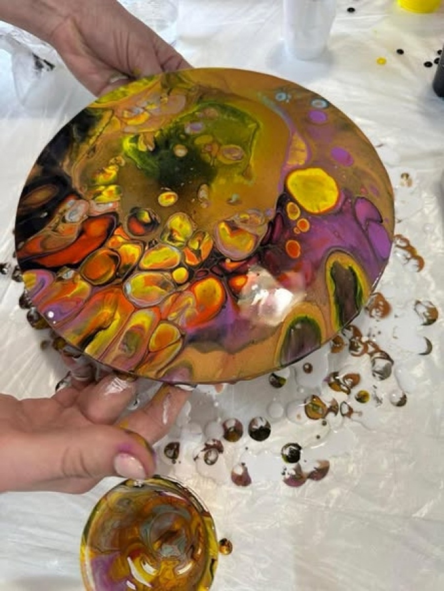 Учасники нетворкінгу ознайомилися з технікою Fluid Art — сучасним напрямом живопису, що передбачає створення абстрактних композицій за допомогою рідкого акрилу. У рамках заходу кожен мав можливість долучитися до творчого процесу та створити власну художню роботу.