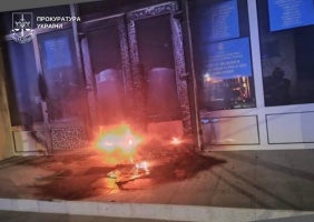 Того ж дня чоловік здійснив підпал будівлі районної державної адміністрації. Аналогічним способом — із використанням нафтопродукту та відкритого джерела вогню — він підпалив вхід до адмінбудівлі.