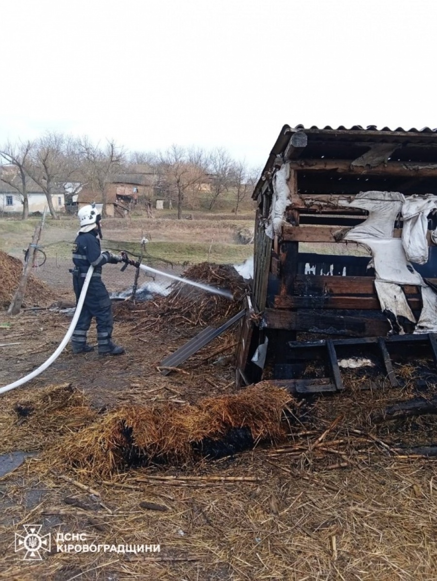 22 березня о 15:34 до Служби порятунку надійшло повідомлення про пожежу на території приватного домоволодіння на вул.Великого Кобзаря у с. БандуровеГайворонської МТГГолованівського району. На місці події було встановлено, що горить 24 м² покрівлі сінника та 100 кг сіна врожаю 2025 року. О 16:26 бійці гайворонського пожежно-рятувального підрозділу загасили займання.