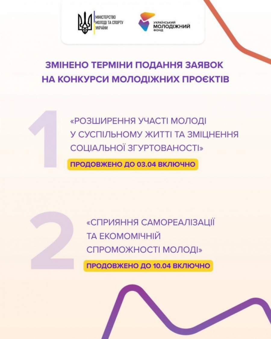 «Сприяння самореалізації та економічній спроможності молоді» - до 10 квітня (включно)