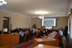 Фахівчиня ТОВ «Будактивпроєкт» Оксана Звенигородська представила членам робочої групи, до якої входять рідні загиблих, представники громадських організацій, волонтери, архітектори, візуалізацію трьох передпроєктних пропозицій концепції проєкту Алеї Слави.