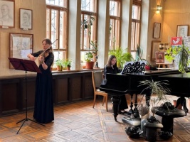 В музичній вітальні художньо-меморіального музею Олександра Осмьоркіна в останній день березня панував справжній весняний настрій, який подарували слухачам студентки Кропивницького музичного фахового коледжу Софія Гриценко, Ірина Сеннікова, Вероніка Кулініч, Анастасія Ксенженко та юна скрипалька Маргарита Тютюнник, яка навчається у 6-му класі Музичної школи №2 імені Юлія Мейтуса. Акомпанувала їм на старовинному музейному роялі з чарівним оксамитовим звучанням концертмейстер Оксана Чванова. Про захід розповіла директорка музею Віта Чернова.