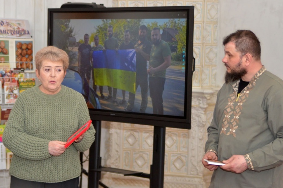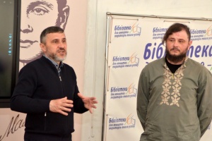Також поет-військовослужбовець передав директорці обласної бібліотеки для юнацтва імені Євгена Маланюка Ларисі Савенко подарунки – власну книжку та книги львівських авторів.