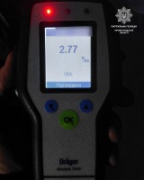 Під час встановлення обставин події патрульні виявили у керманича ознаки алкогольного сп’яніння. Чоловік не заперечував, що вживав алкоголь, та погодився пройти огляд за допомогою приладу Драгер. Алкотестер показав 2,77 проміле, що майже у 14 разів перевищило допустиму норму.