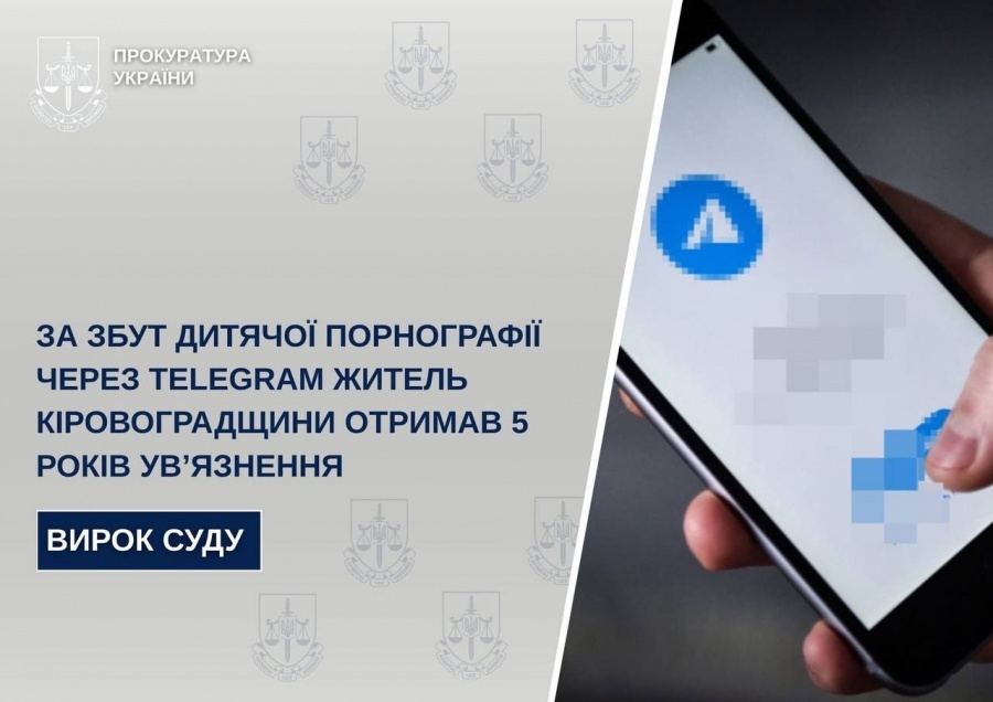 Подільський районний суд міста Кропивницького визнав винним 23-річного жителя Кропивницького району у розповсюдженні та збуті порнографічного контенту, зокрема матеріалів за участю неповнолітніх, через Telegram-канали. Йому призначено реальне покарання — 5 років позбавлення волі.