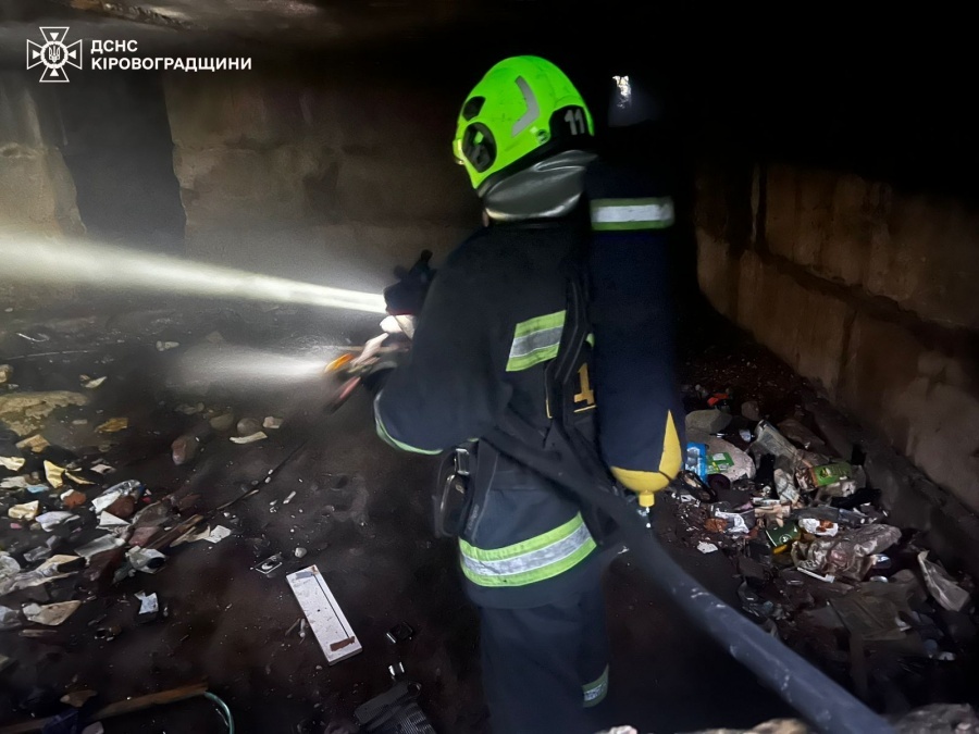 О 20:34 рятувальники міста Кропивницький виїхали на гасіння пожежі у підвальному приміщенні п’ятиповерхового житлового будинку. Там горіли 2 м² побутових речей. О 21:13 займання ліквідували.