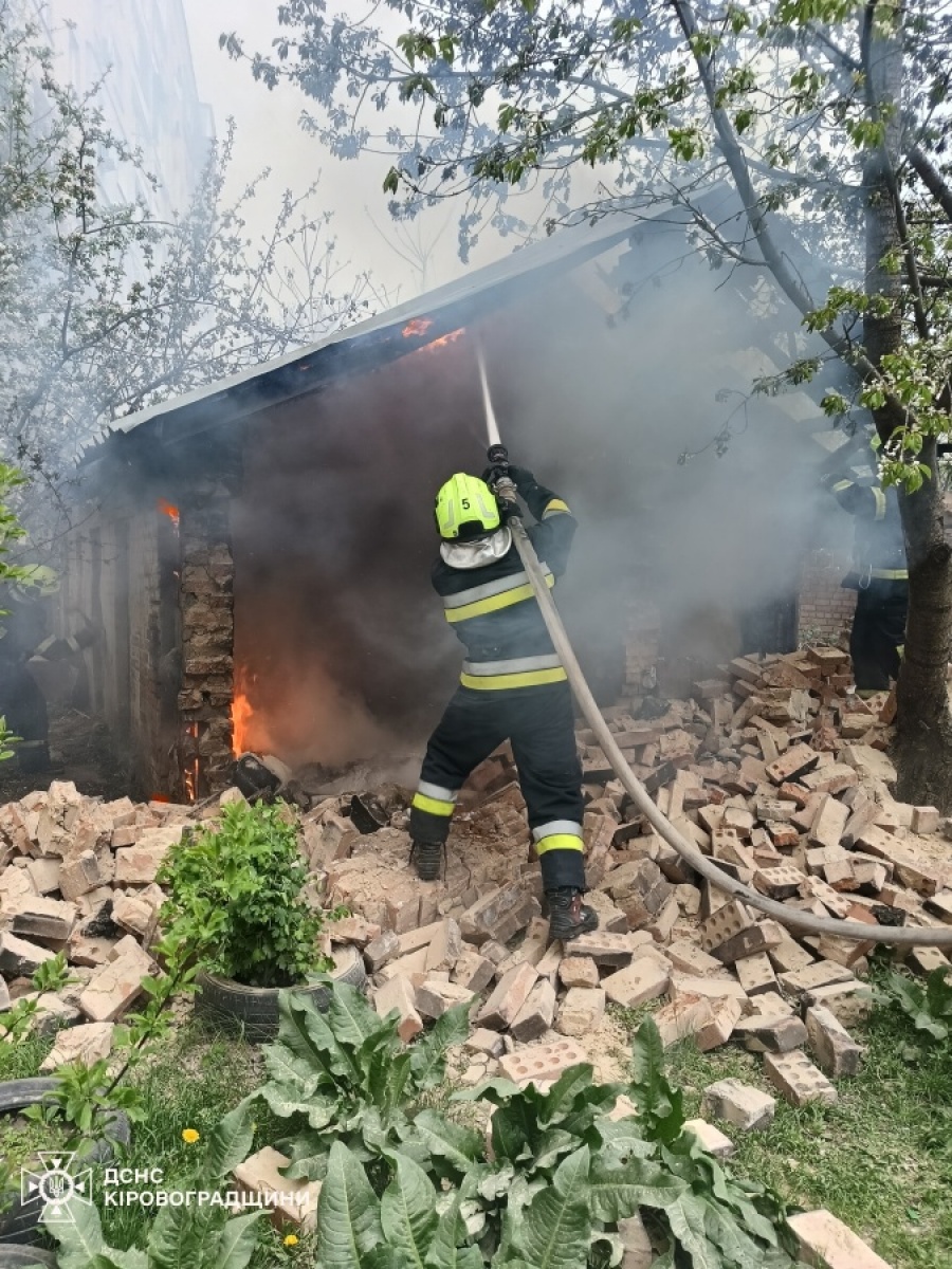 23 квітня о 13:06 до Служби порятунку надійшло повідомлення про пожежу на відкритій місцевості у місті Кропивницький. На місці події рятувальники встановили, що горіли 3 м² сміття та 6 м² покрівлі господарчої споруди, яка не експлуатується. О 13:37 вогнеборці ліквідували пожежу.
